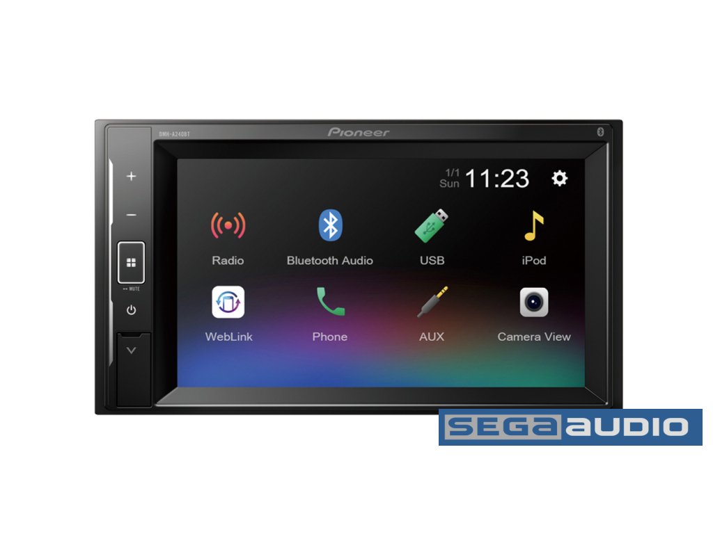 Pioneer DMH-A240BT je 2DIN multimediálna jednotka so 6,2 dotykovým displejom a krátkym šási pre jednoduchú inštaláciu. Technológia Weblink umožňuje po prepojení kompatibilného smartfónu iPhone alebo Android prostredníctvom USB vstupu ovládať váš smartfón ako aj zrkadliť vybrané aplikácie priamo na displeji autorádia.Slovenská verzia zo Slovenským návodom.