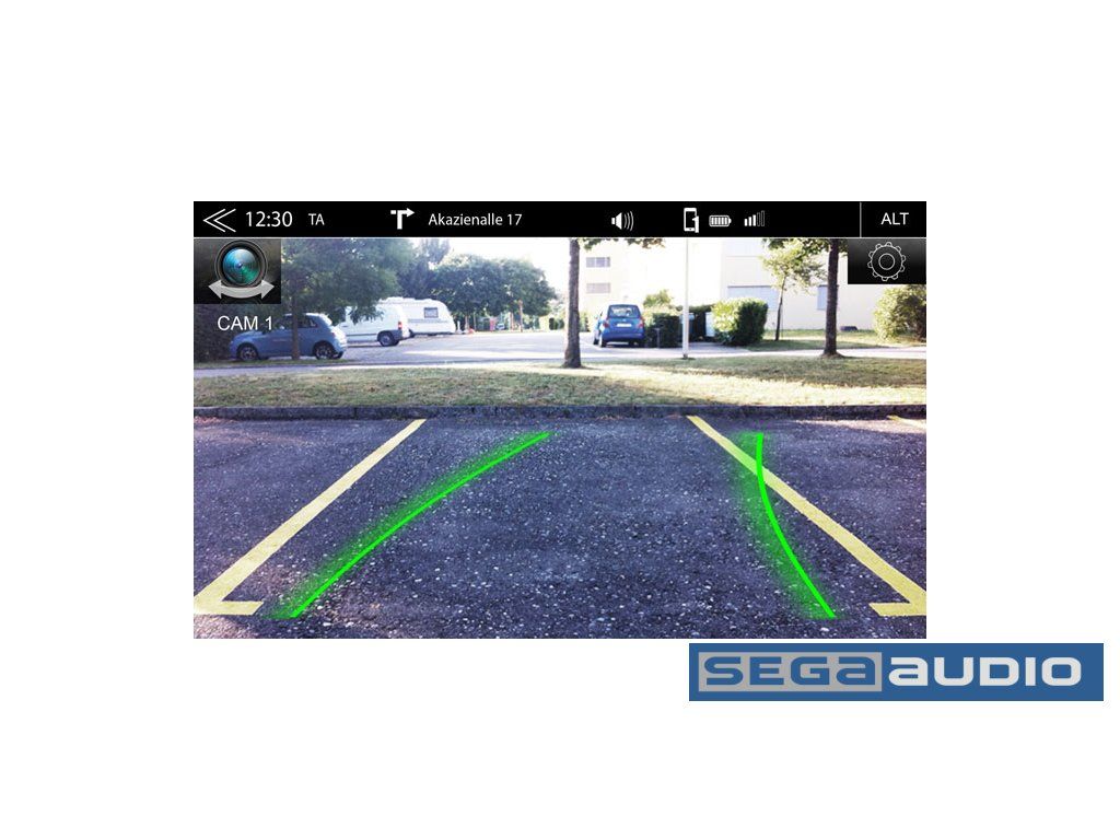 Infotainment systém E a gt; GO CORE umožňuje pripojiť a ovládať až dve parkovacie kamery. Pomocné mriežky môžu byť buď dynamické alebo nastaviteľné a kamery majú prístup k napájaniu 12V. Funkciu prepínania je možné ovládať manuálne alebo sa spúšťa automaticky pri zaistení spätného chodu. (*vyžaduje údaje o uhle volantu na CAN).
