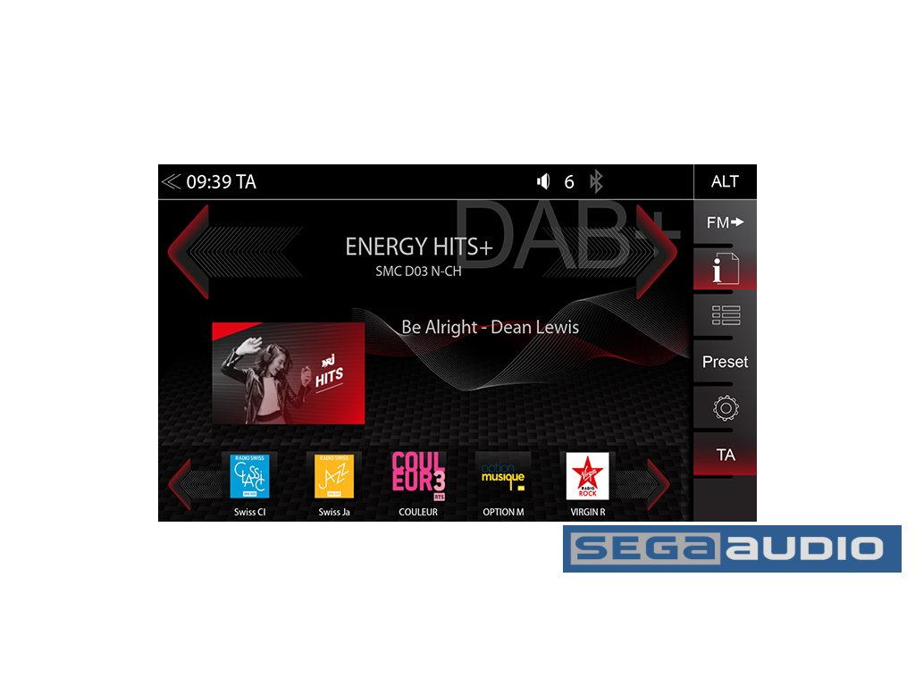 • DAB+ dvojitý tuner s dynamickým zoznamom staníc, DAB<>FM a DAB<>DAB Service Following, MOT prezentácia a DLS-te*t